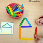 Juego para desarrollar actividades motoras y cognitivas en las que se debe identificar colores para hacer la figura que se presenta en cada una de las plantillas